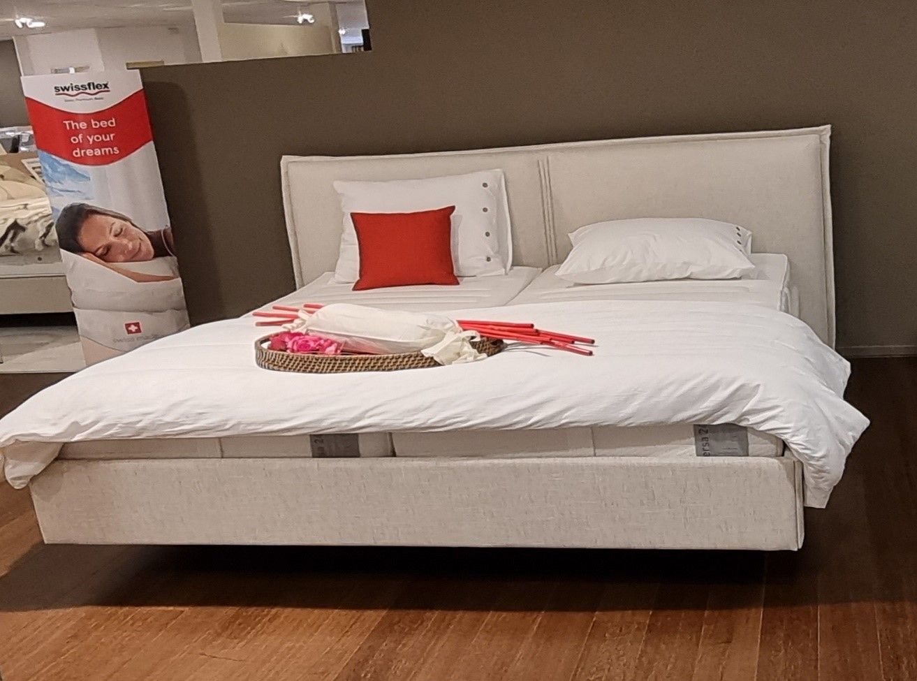 Opruiming Swissflex hoofdbord met matrassen en lattenbodem, poten en matrasbeugels