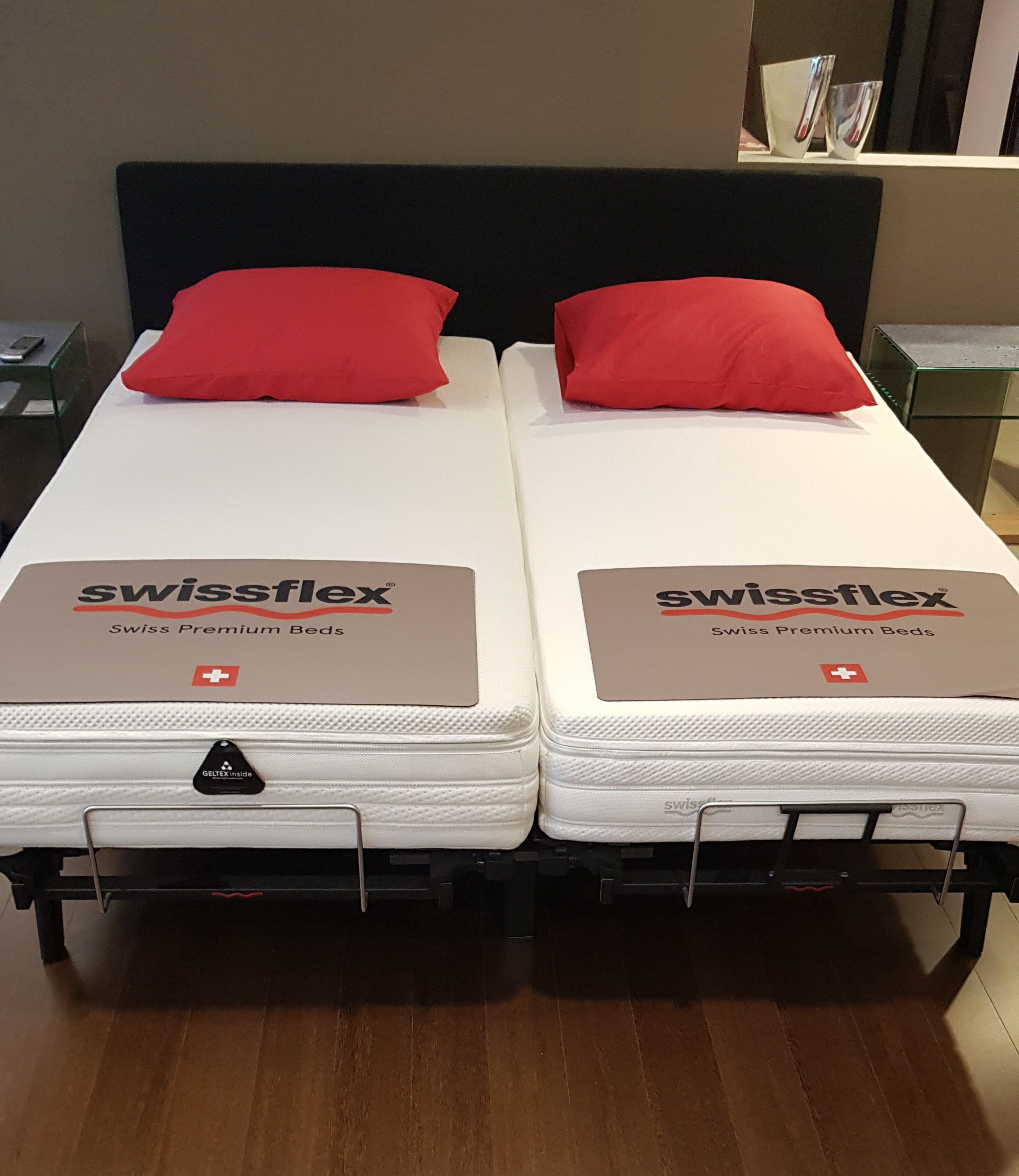 Lattenbodems : Swissflex Uni Bridge 14 op poten : 1 x handverstelbaar, 1 x 2-motorig : rug-been motor
